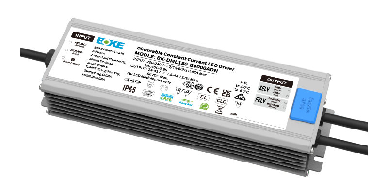 BK-DML150-B4000ADN | 200-240VAC | 152W | 12-42VDC | 1.5-4A | 0.98 | 91% | 5% | 60℃ | 90°C | L197*W68*H38 |
