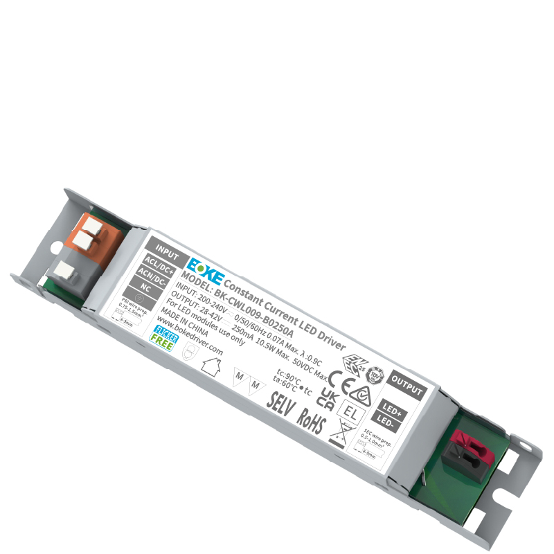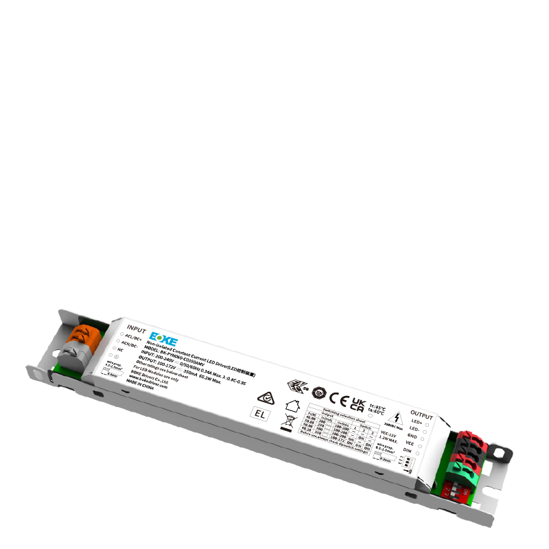 输出无频闪、高功率因数、高效率、低谐波、双级电路设计、380VAC 高压短时冲击耐受、ErP 能效认证、SELV、Class I、CE 认证、ENEC 认证、UKCA 认证、RCM 认证、CCC 认证、EL 认证、IP20 防护等级