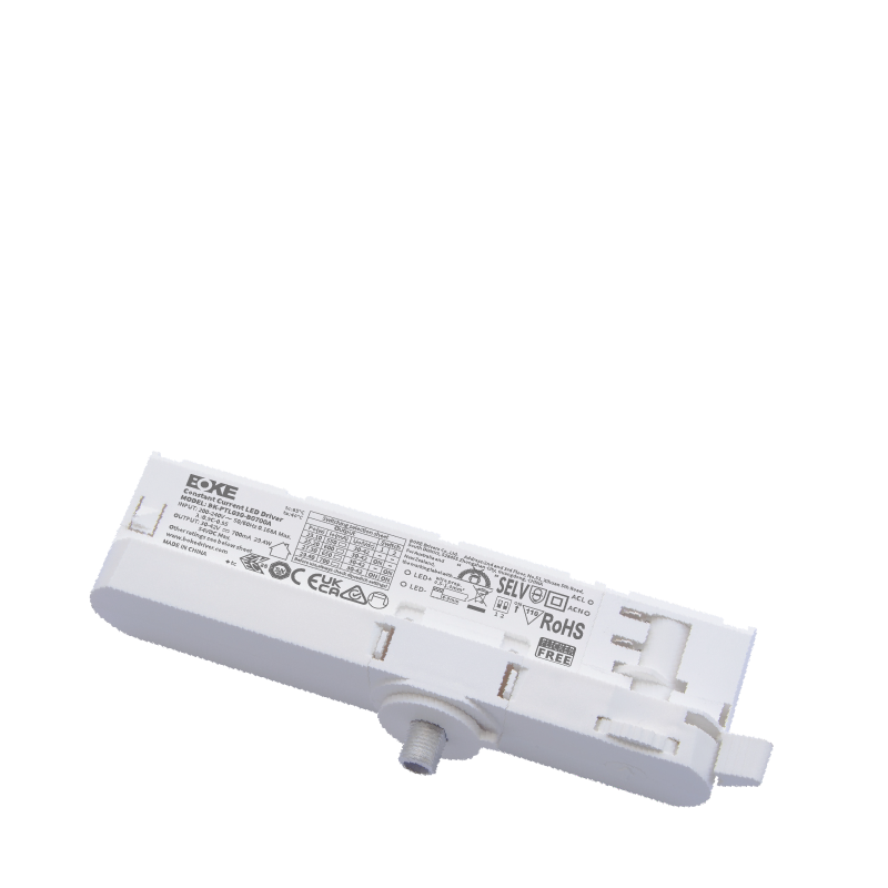 AC 一体导轨灯具标准、认证类:ErP 能效认证、SELV、Class II拨码多档位电流输出、调节灯具功率、输出无频闪、高功率因数、低谐波、ErP 能效认证、SELV、Class II、CE 认证、ENEC 认证、UKCA 认证、RCM 认证、IP20 防护等级