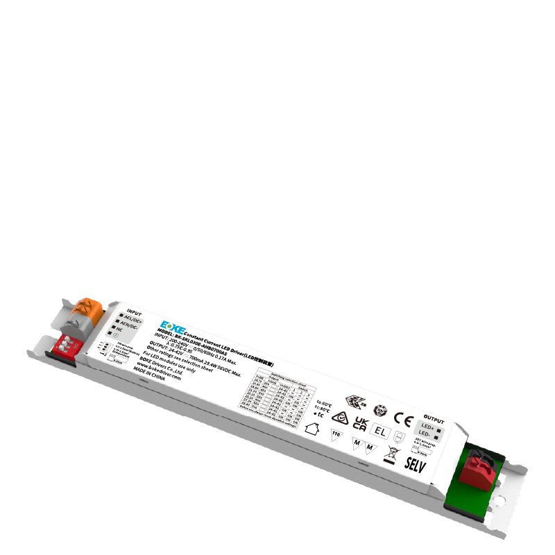拨码多档位电流输出、输出无频闪、高功率因数、高效率、低谐波、双级电路设计、380VAC 高压短时冲击承受、ErP 能效认证、SELV、Class I、CE 认证、ENEC 认证、UKCA 认证、RCM 认证、CCC 认证、EL 认证、Zhaga book 13 标准